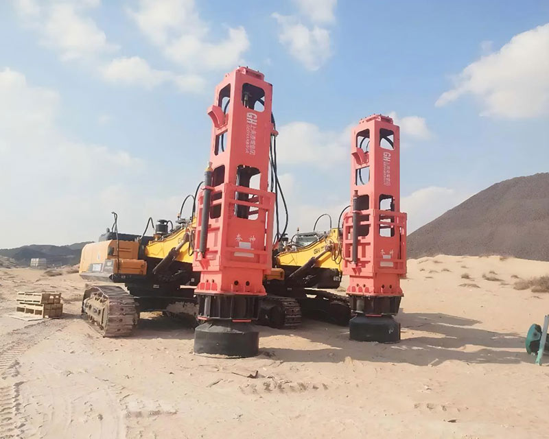 2024年底,上海港灣集團(tuán)采購的6臺(tái)HC150挖掘機(jī)液壓夯分別在沙特阿拉伯利雅得 阿聯(lián)酋阿布扎比等沙漠地址環(huán)境下的地面改進(jìn)工程中使用。